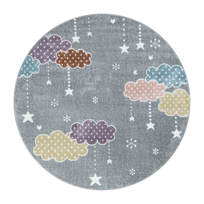 Lucky Nuvens tapete infantil pelo curto redondo Ø 160cm cinzento